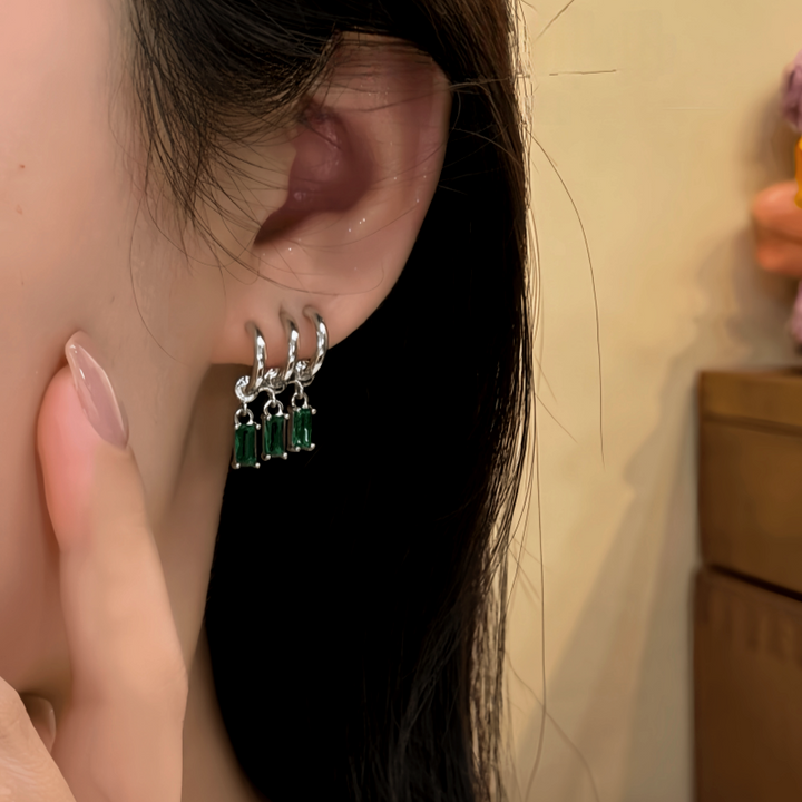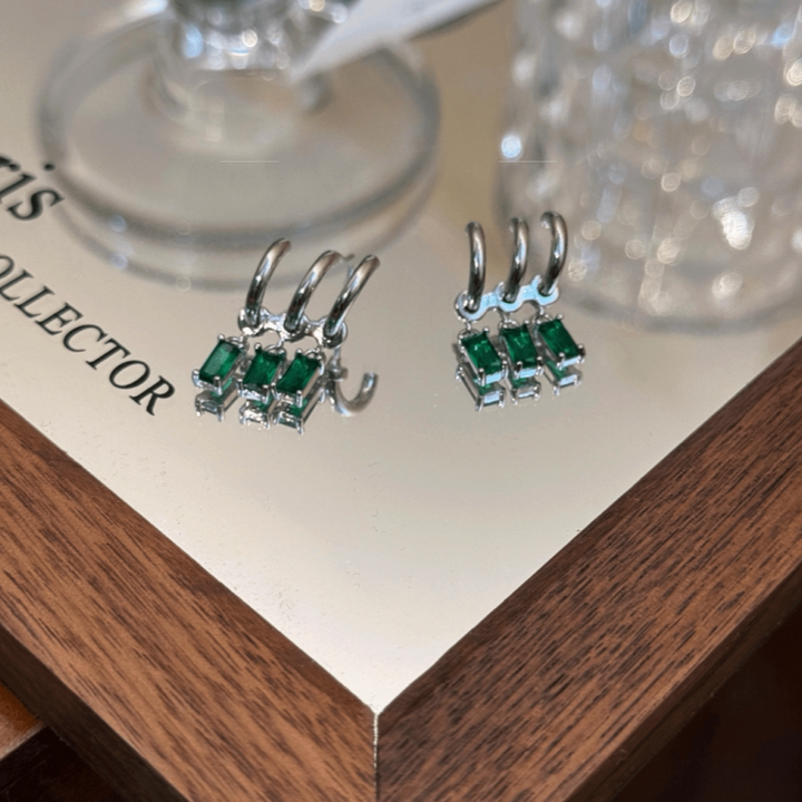 14K Gold-Plated Multi-Layer Green Diamond Tassel Earrings