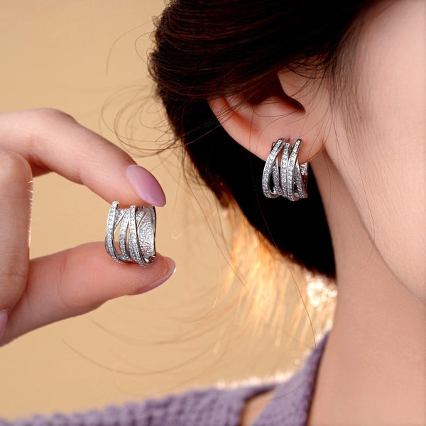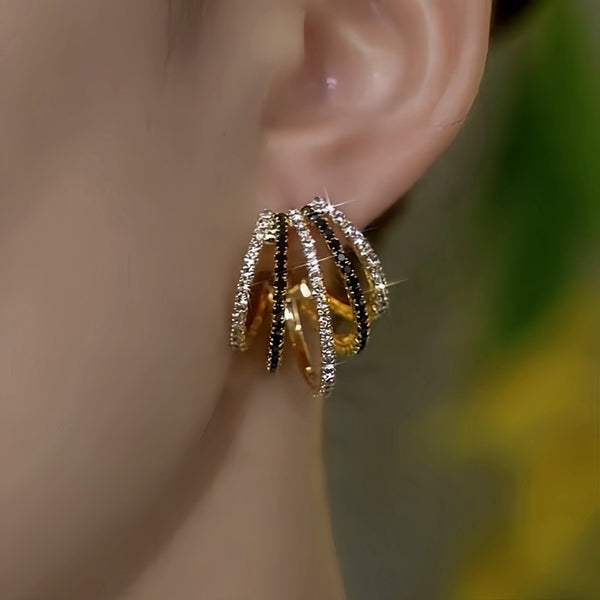 14K Gold-Plated Elegant Zircon Diamond Multi-Layer Hoop Earrings