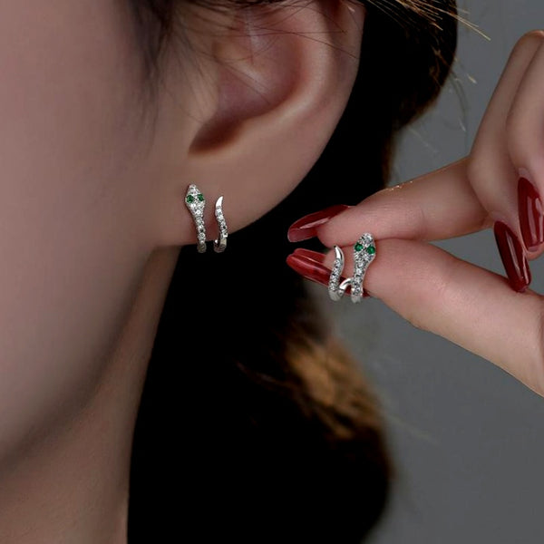 Sterling Silver Double-Layer Zircon Diamond Snake Design Stud Earrings
