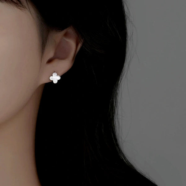 Sterling Silver Pearl Four-Leaf Clover Earrings