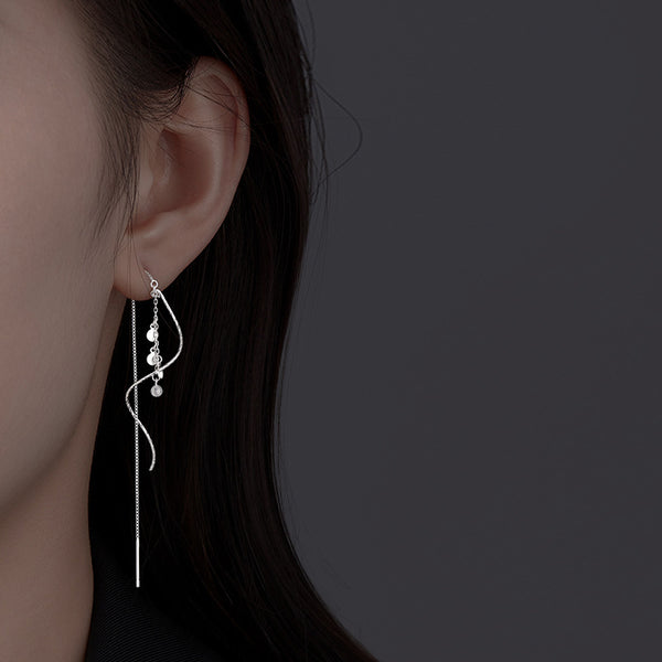 Sterling Silver Wavy Tassel Threader Earrings