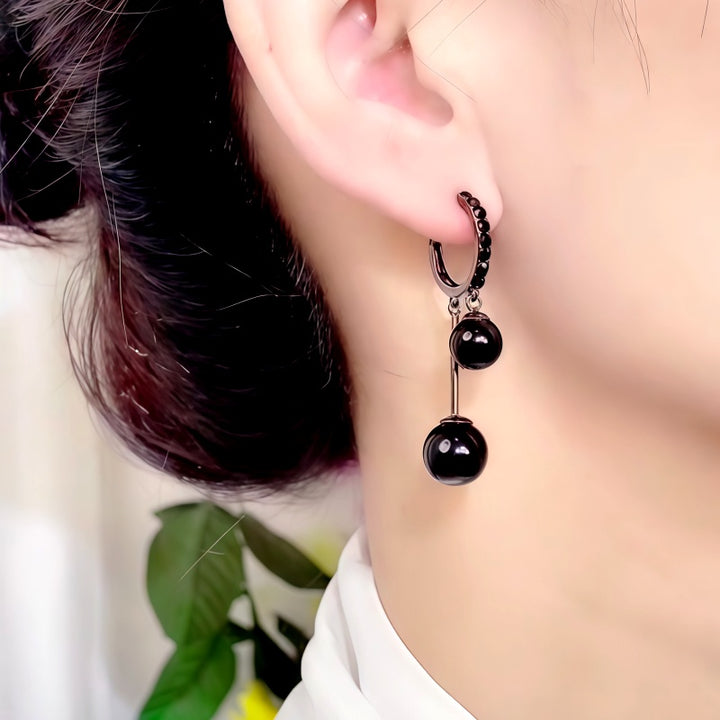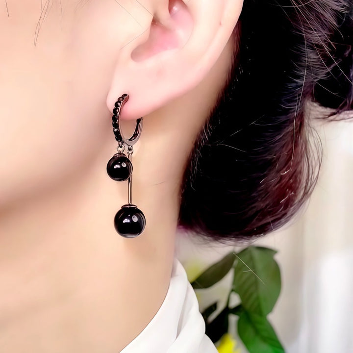 14K Gold-Plated Black Zircon Diamond Bead Tassel Earrings