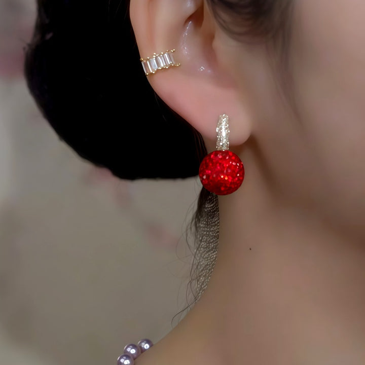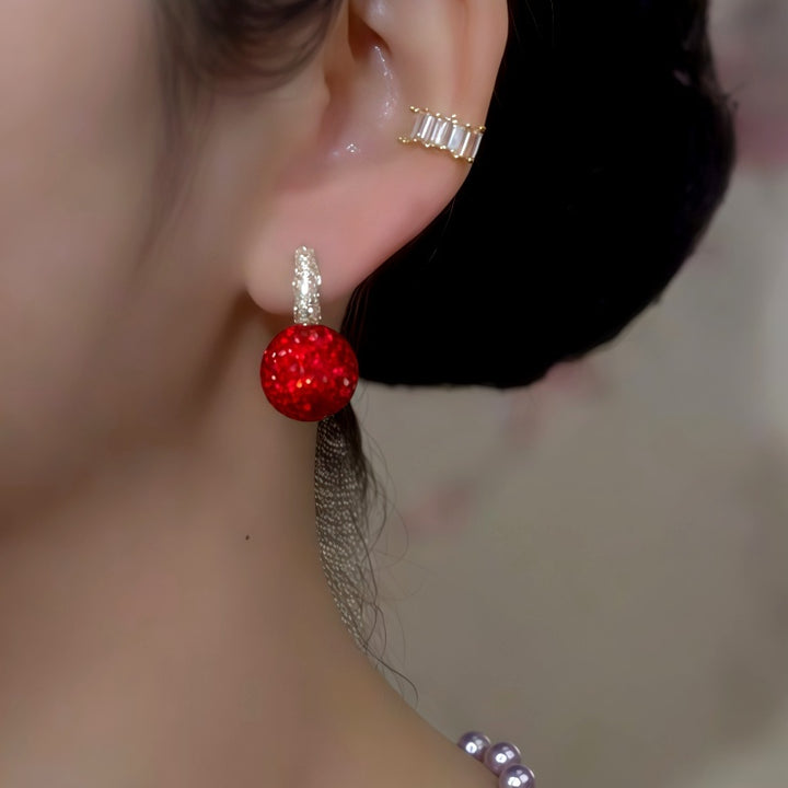 14K Gold-Plated Luxury Zircon Diamond Red Ball Earrings