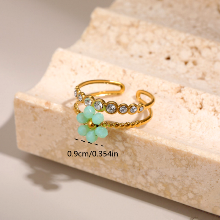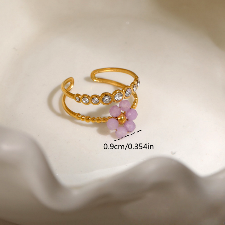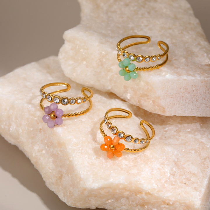 18K Gold Plated Adjustable Zircon Diamond Flower Rings