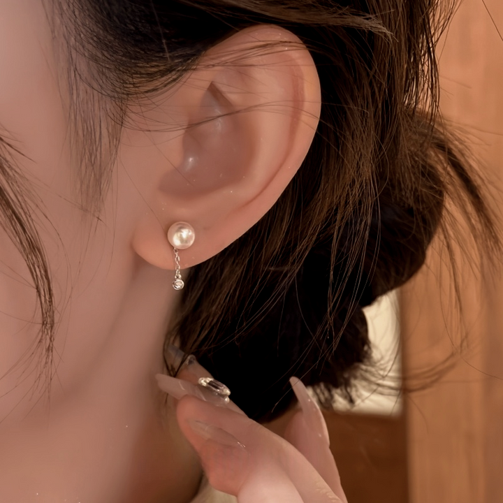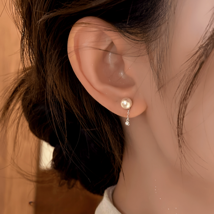 14K Gold-Plated Elegant Short Chain Pearl Earrings