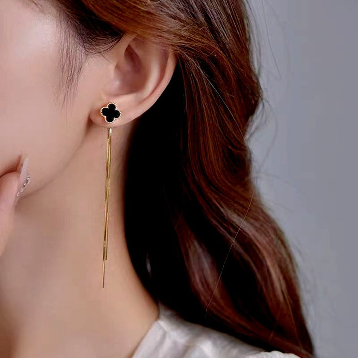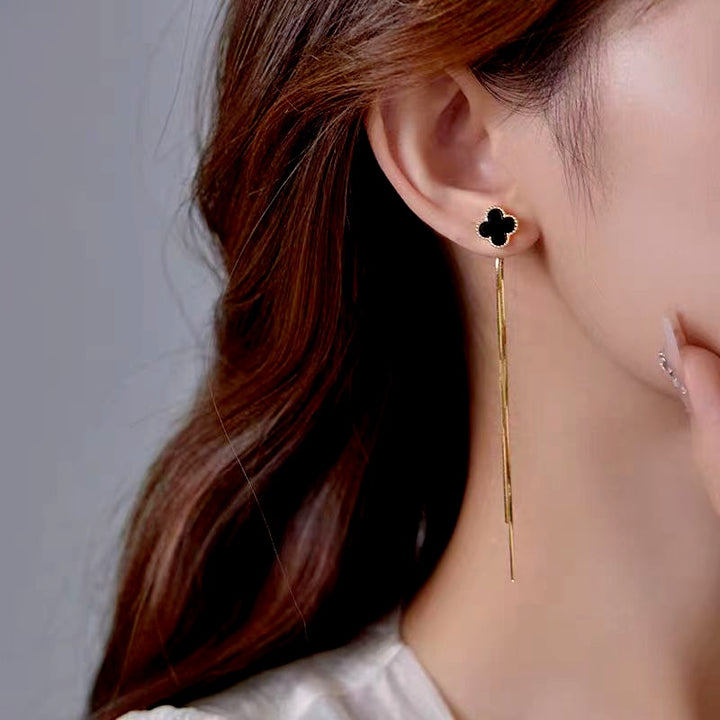 14K Gold-Plated Four-Leaf Clover Tassel Earrings