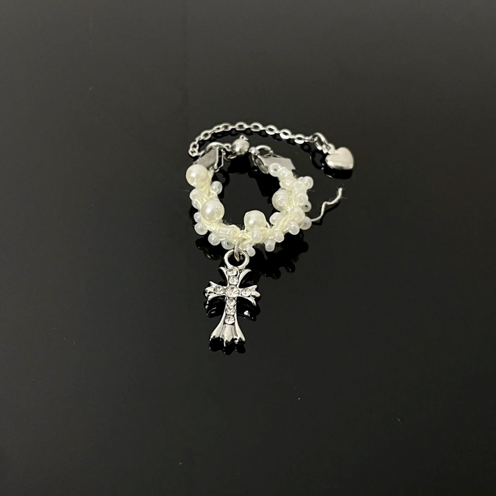 14K Gold Plated Adjustable Bead Zircon Diamond Cross RIngs