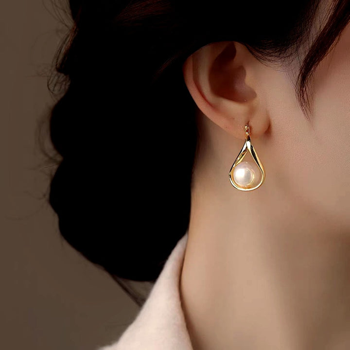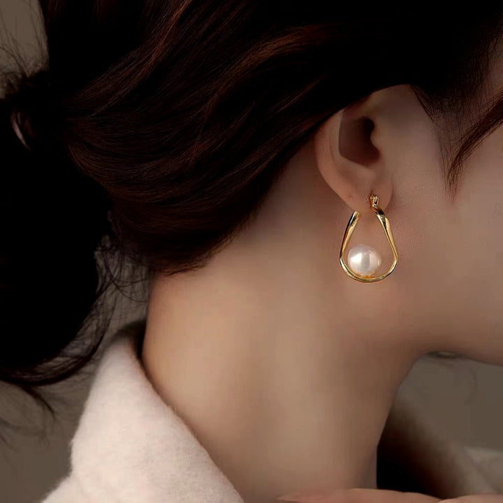 14K Gold-Plated Elegant Twisted U-Shaped Pearl Earring
