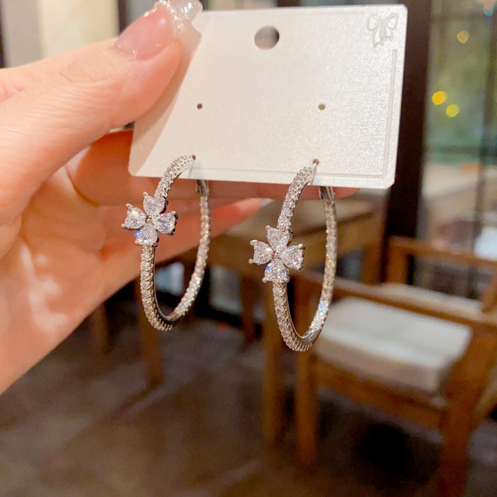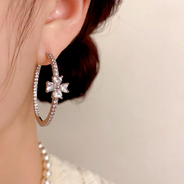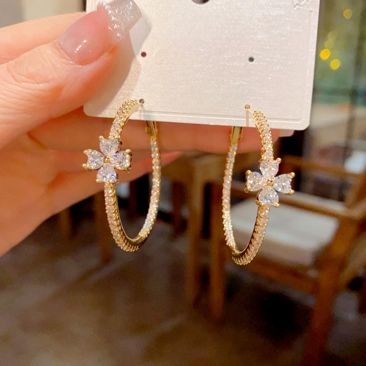 14K Gold-Plated Elegant Zircon Diamond Four-Leaf Flower Earrings