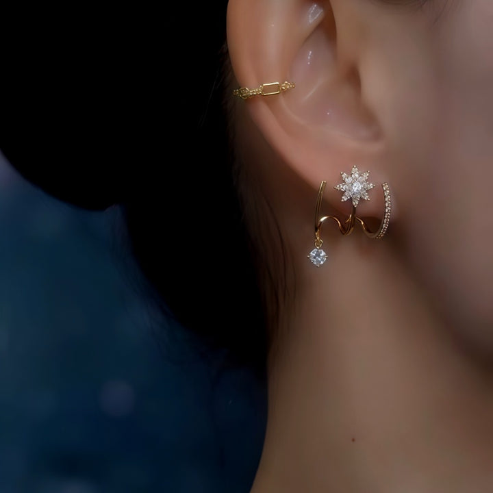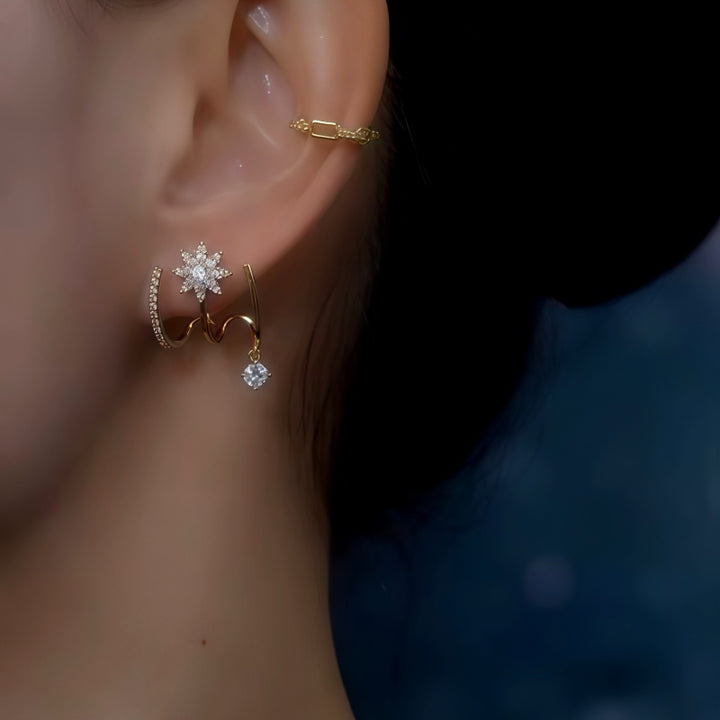 14K Gold-Plated Elegant Zircon Starburst Studs