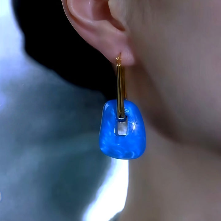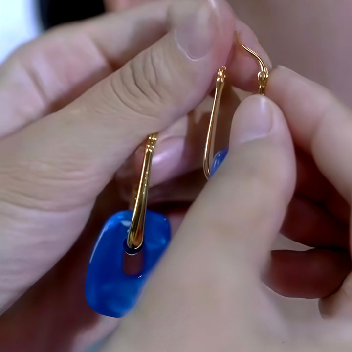 14K Gold-Plated Exquisite Elegant Blue Glazed Earrings