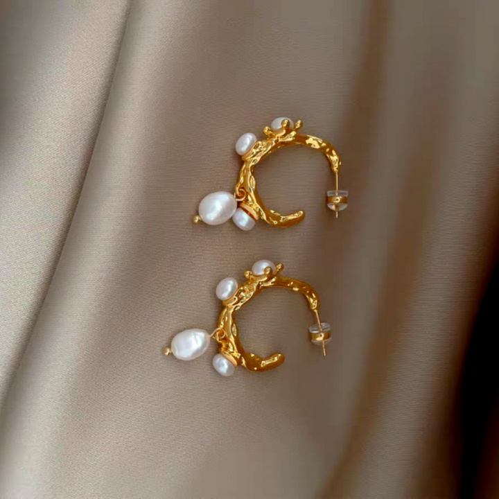 14K Gold-Plated Luxury C-Shaped Vintage Baroque Pearl Earrings