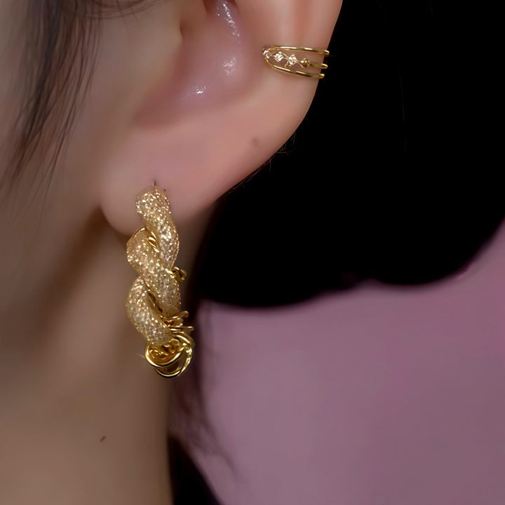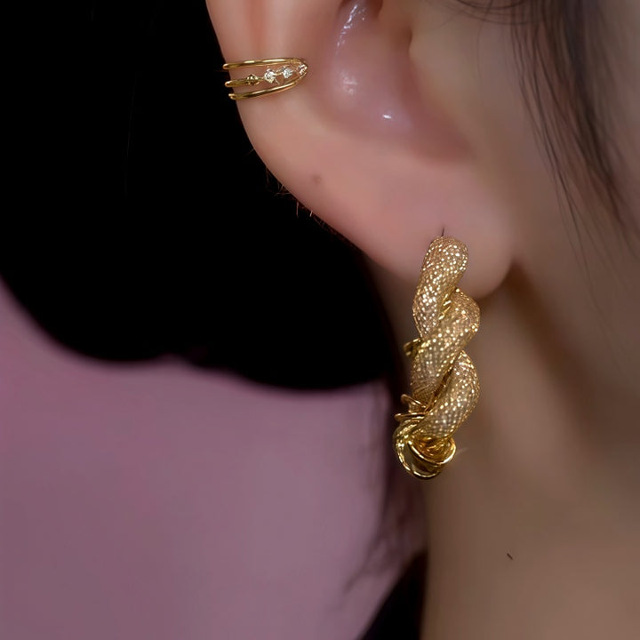 14K Gold-Plated Luxury French-Style Mesh Hoop Earrings