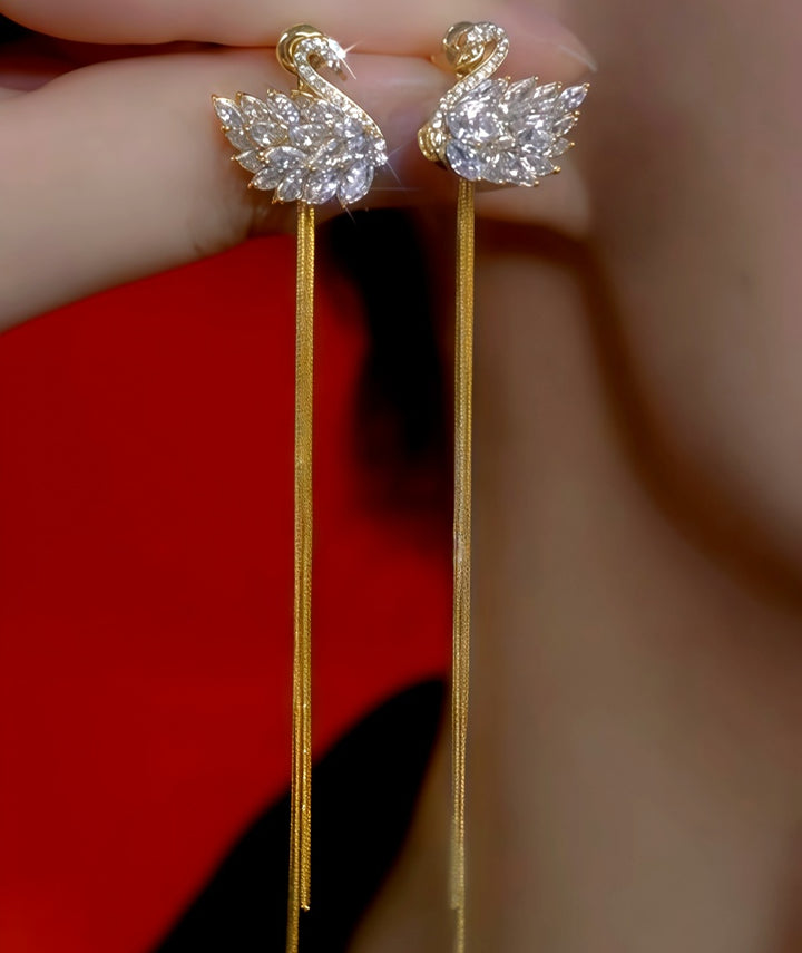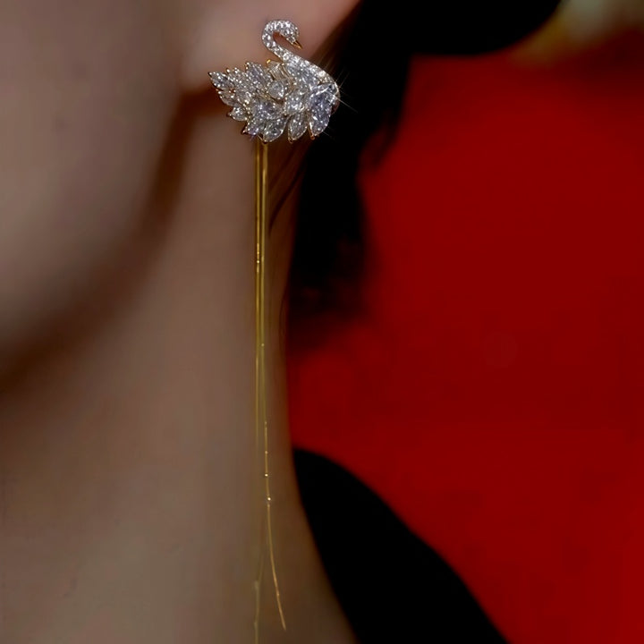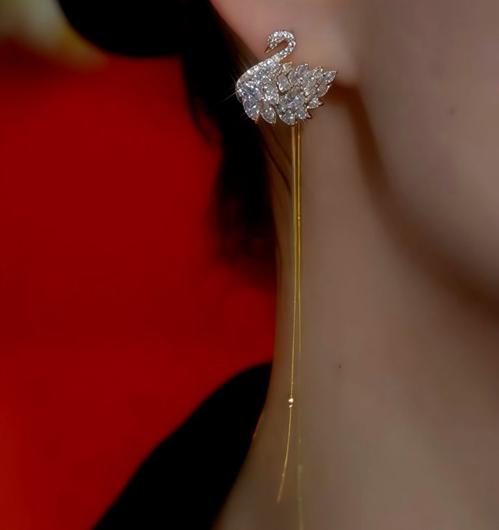 14K Gold-Plated Luxury Golden Swan Tassel Earrings