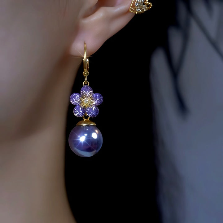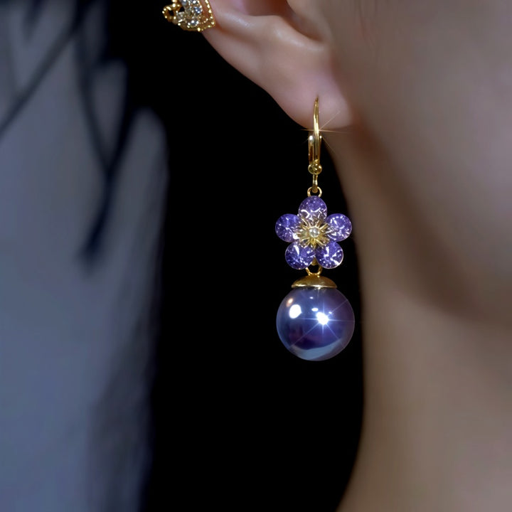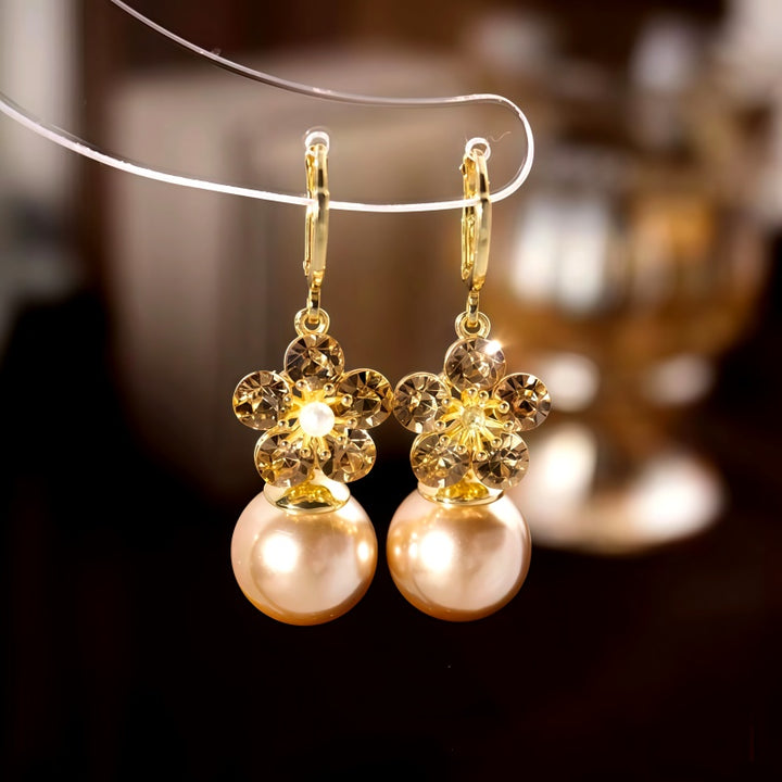 14K Gold-Plated Luxury Zircon Diamond Flower Bead Earrings
