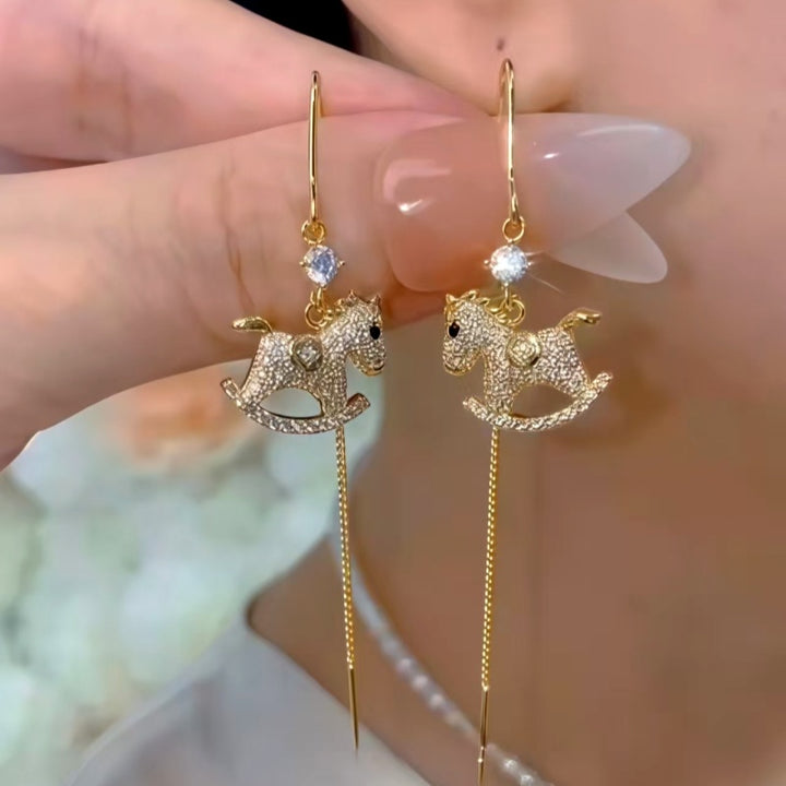 14K Gold-Plated Luxury Zircon Diamond Horse Threader Earrings