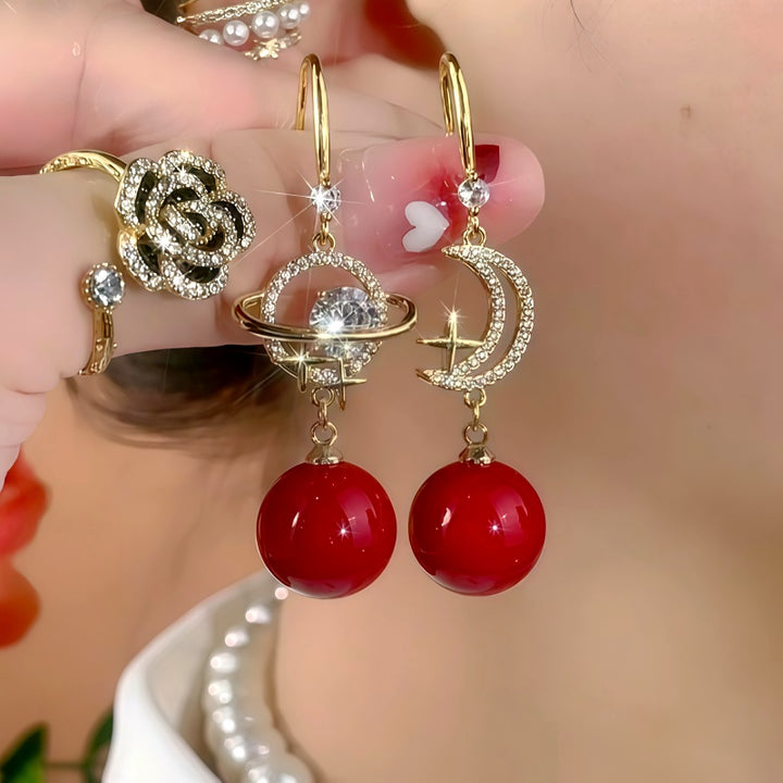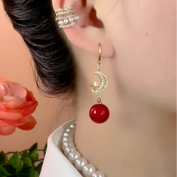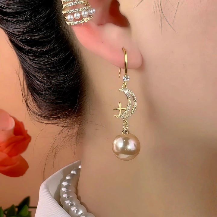 14K Gold-Plated Luxury Zircon Diamond Moon And Star Ear Hook Earrings