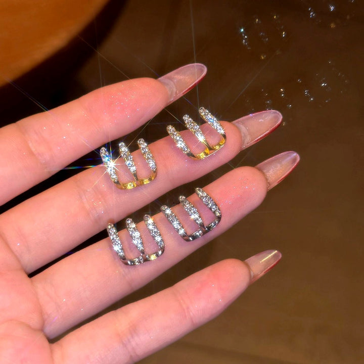 14K Gold-Plated Luxury Zircon Diamond Multi-Layer Stud Earrings
