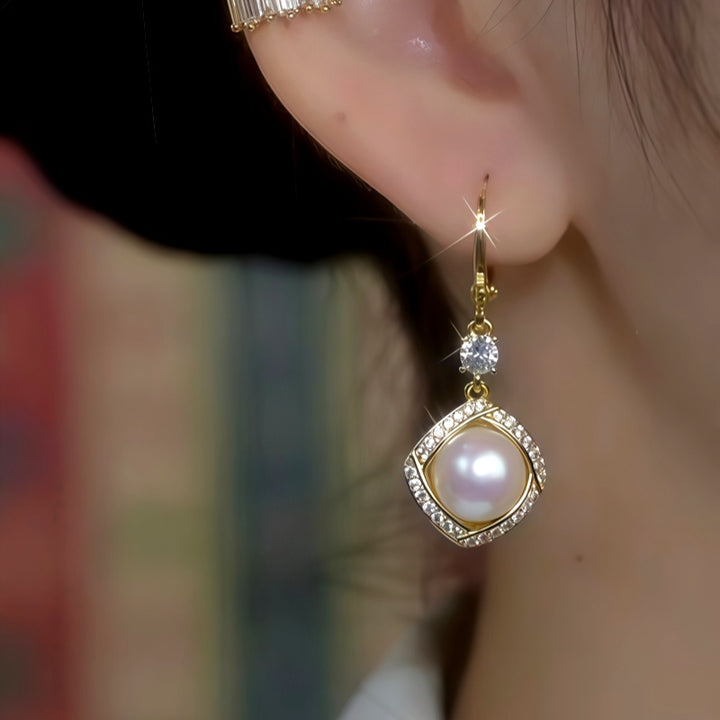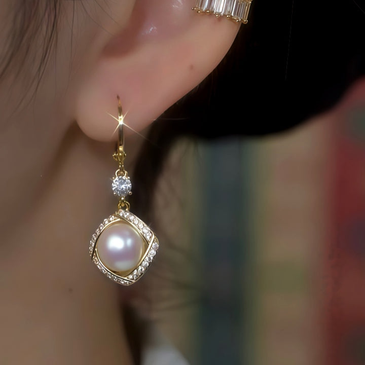 14K Gold-Plated Luxury Zircon Diamond Pearl Earrings
