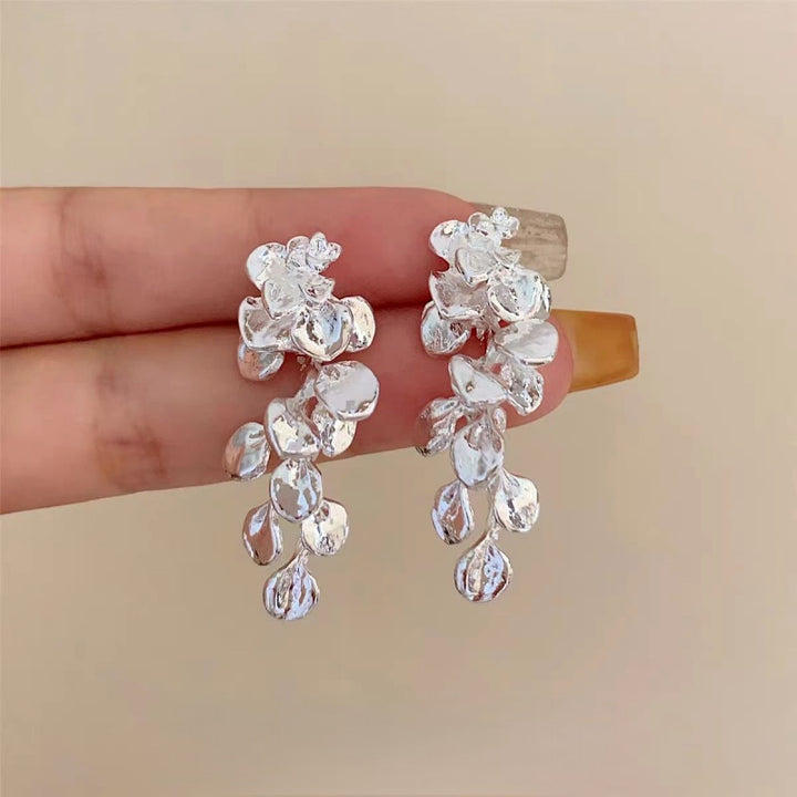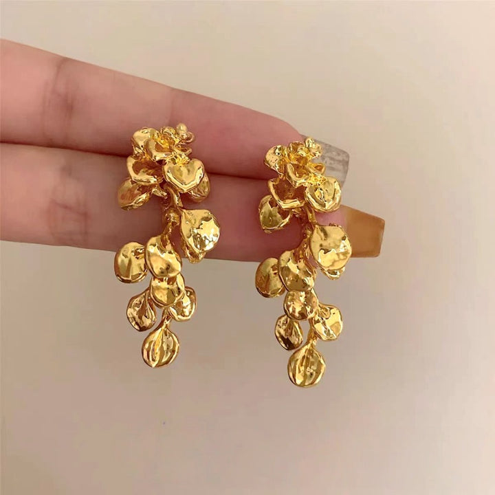 14K Gold-Plated Metal Leaf Tassel Earrings