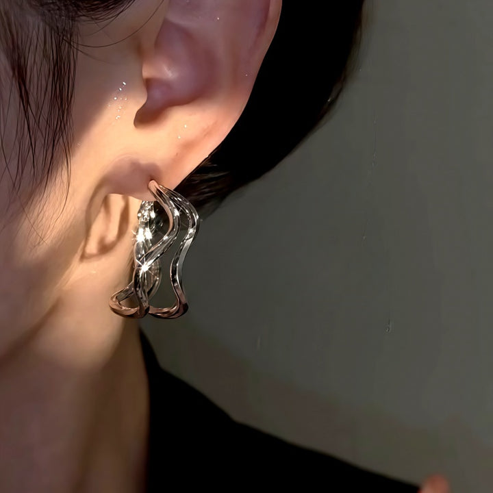 14K Gold-Plated Wavy Double-Layer Hoop Earrings