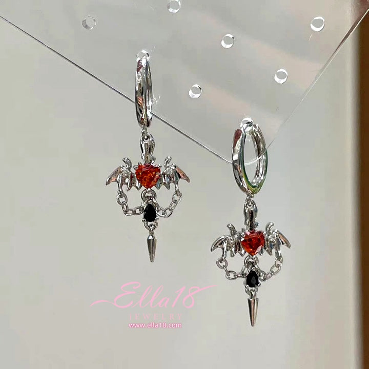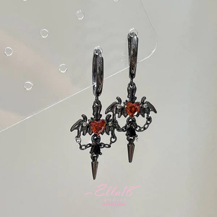 14K Gold-Plated Zircon Diamond Heart Angel Wing Earrings