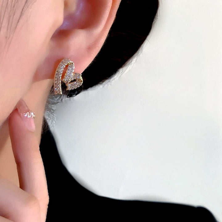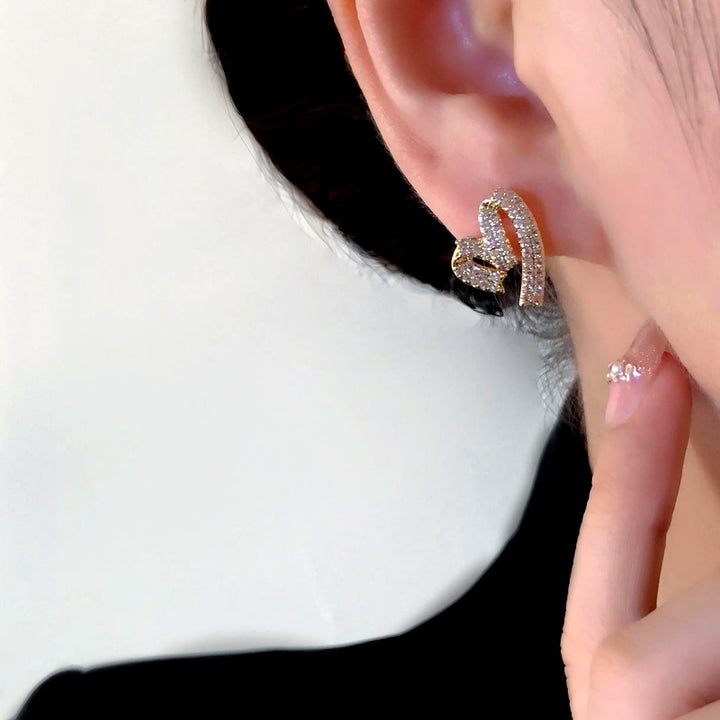 14K Gold-Plated Zircon Diamond Heart Stud Earrings