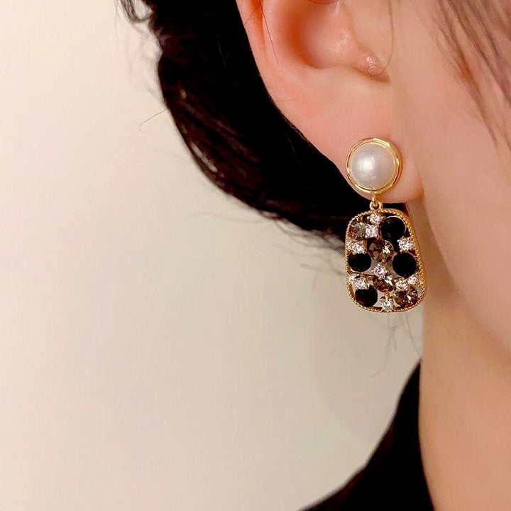 14K Gold-Plated Zircon Diamond Pearl Earrings