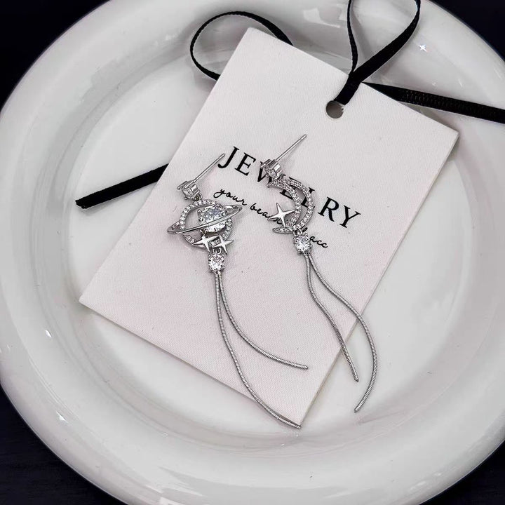 14K Gold-Plated Zircon Diamond Star and Moon Tassel Earrings