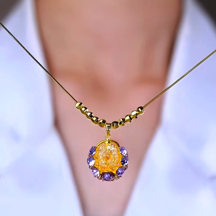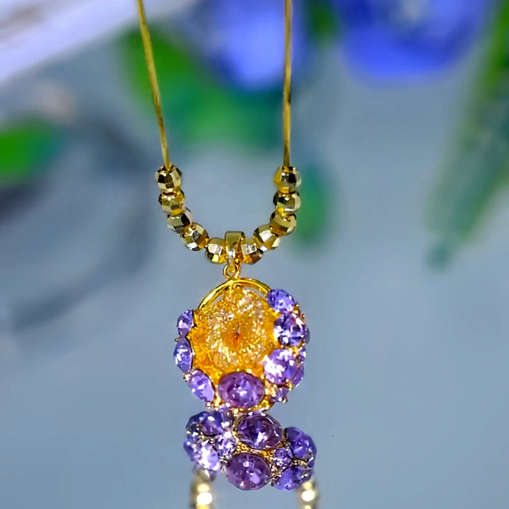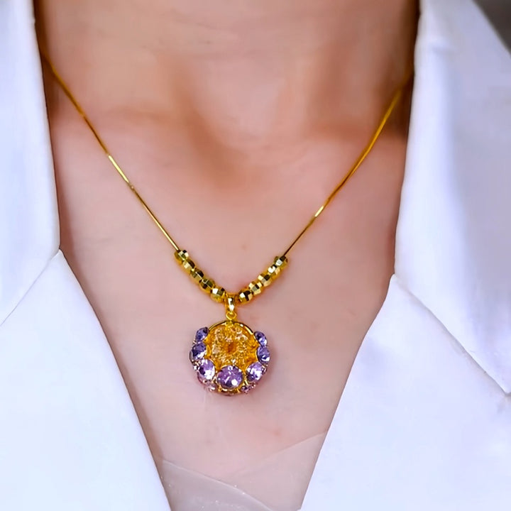 14K Gold-Plated Zircon Purple Diamond Mesh Pendant Necklace