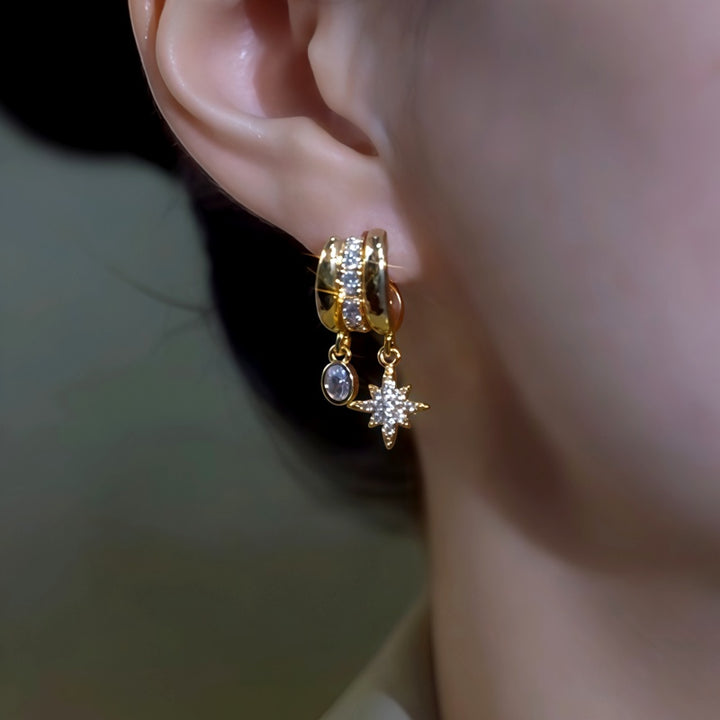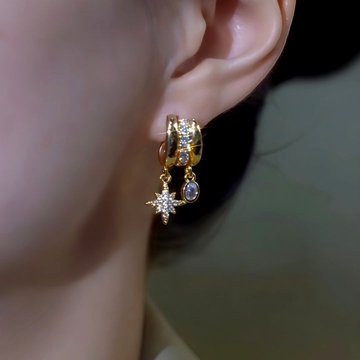 18K Gold-Plated Luxury Zircon Diamond Star And Moon Tassel Earrings
