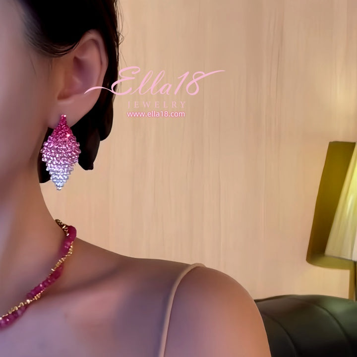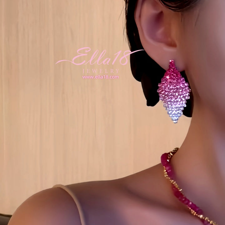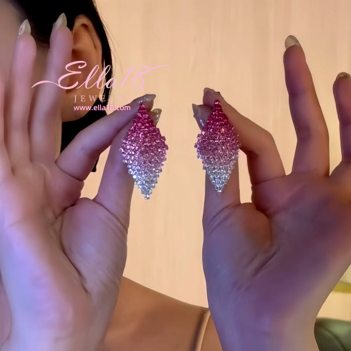 Silver Post Pink Zircon Diamond French Niche Design Earrings