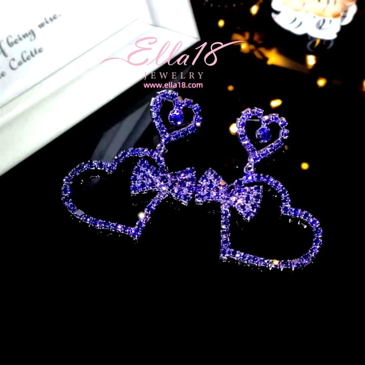 Silver Post Zircon Diamond Double-Layer Heart Earrings
