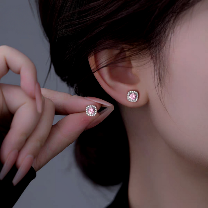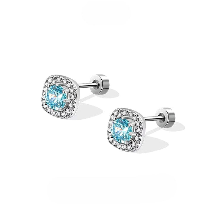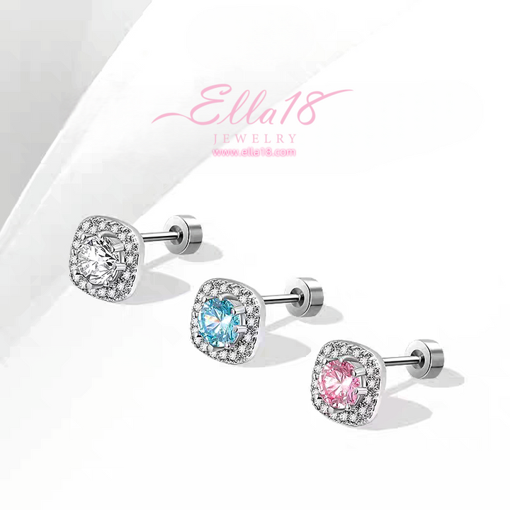 Sterling Silver Zircon Diamond Sugar Cube Stud Earrings