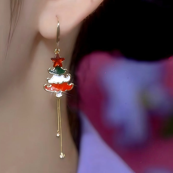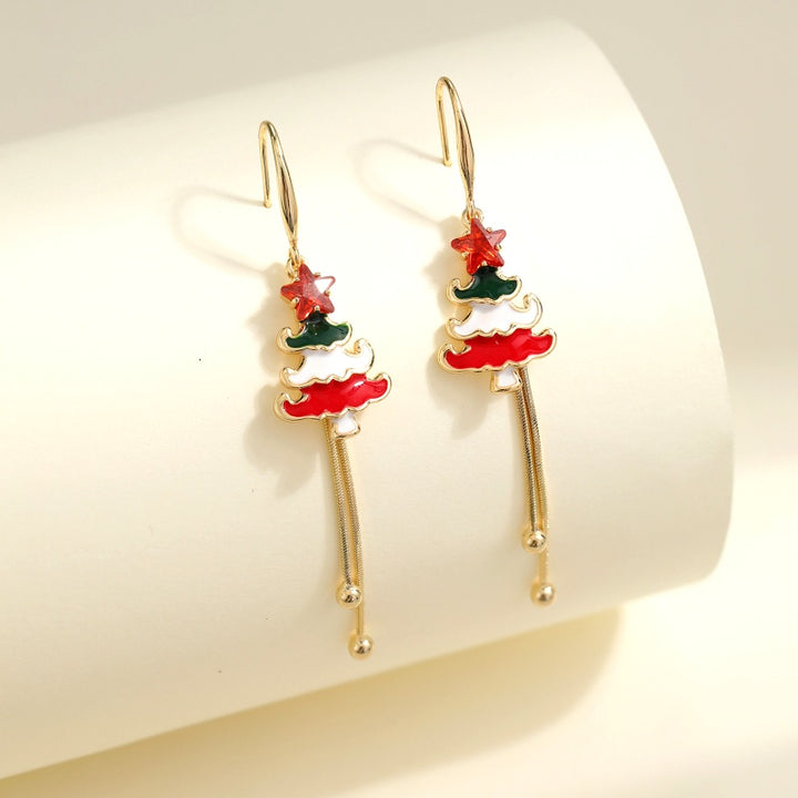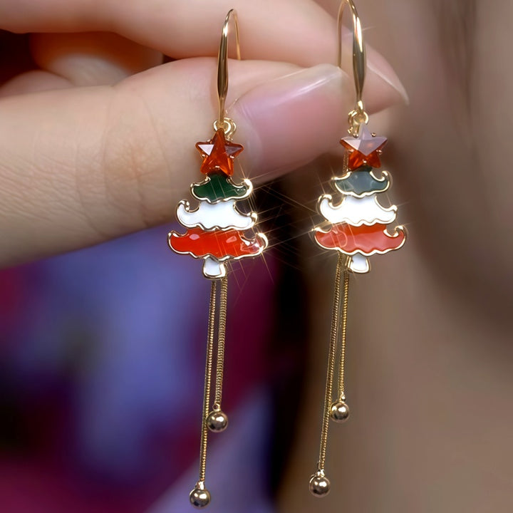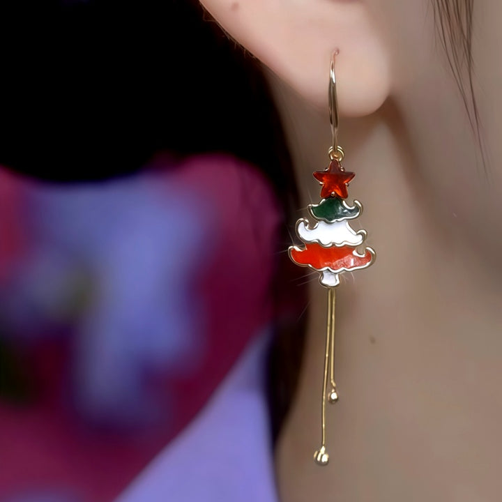 14K Gold-Plated Drip Glaze Christmas Tree Ear Hook Earrings