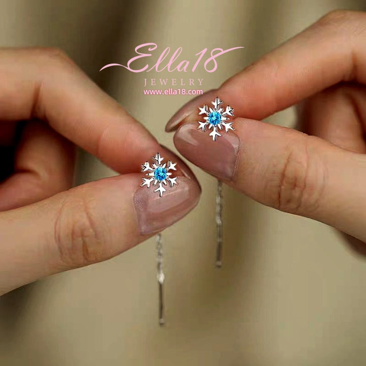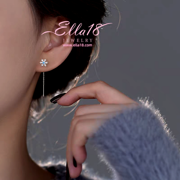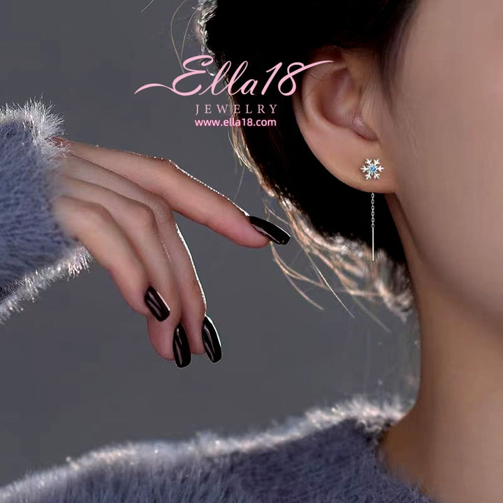 Sterling Silver Christmas Snowflake Threader Earrings