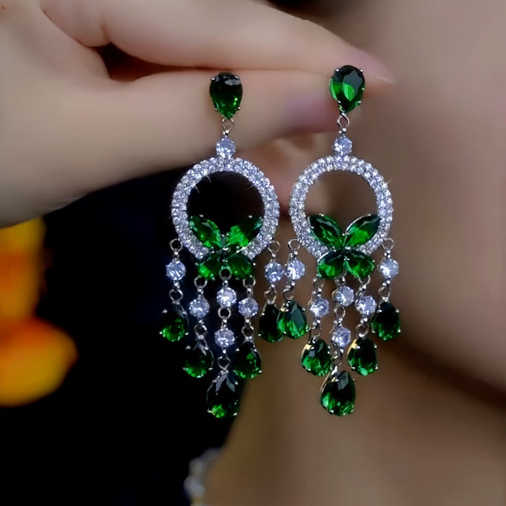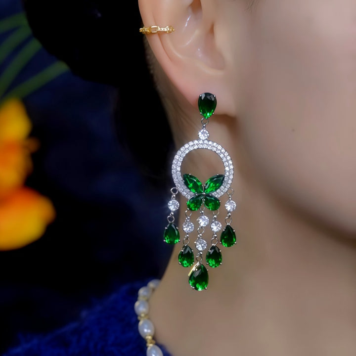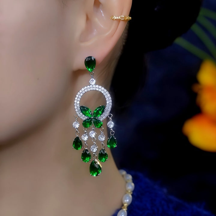 14K Gold-Plated Luxury Zircon Diamond Butterfly Tassel Earrings