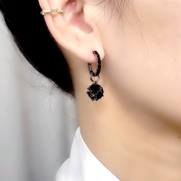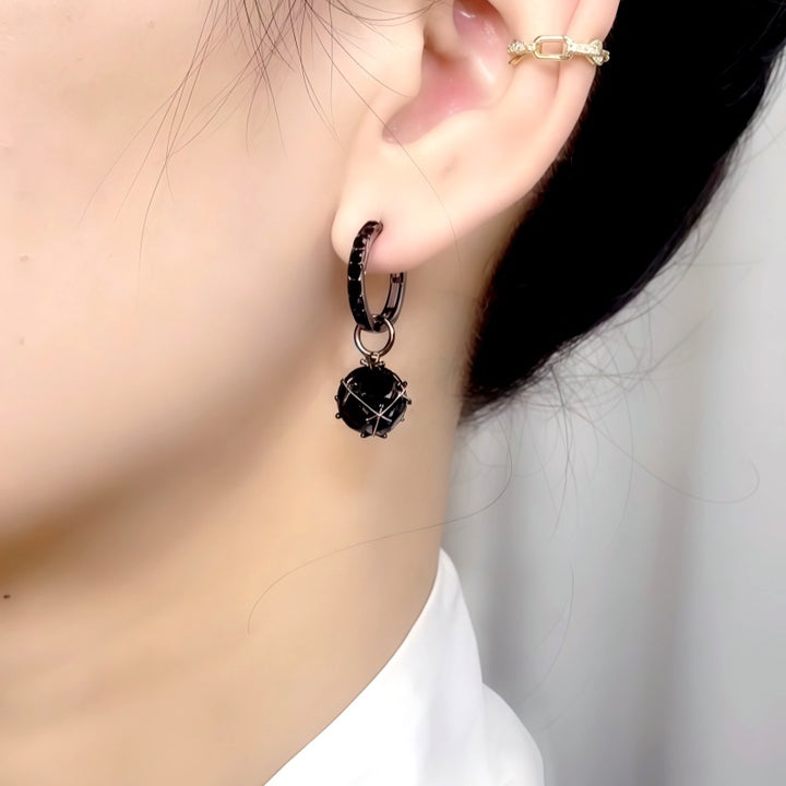 14K Gold-Plated Black Zircon Diamond Ball Pendant Earrings