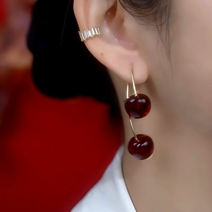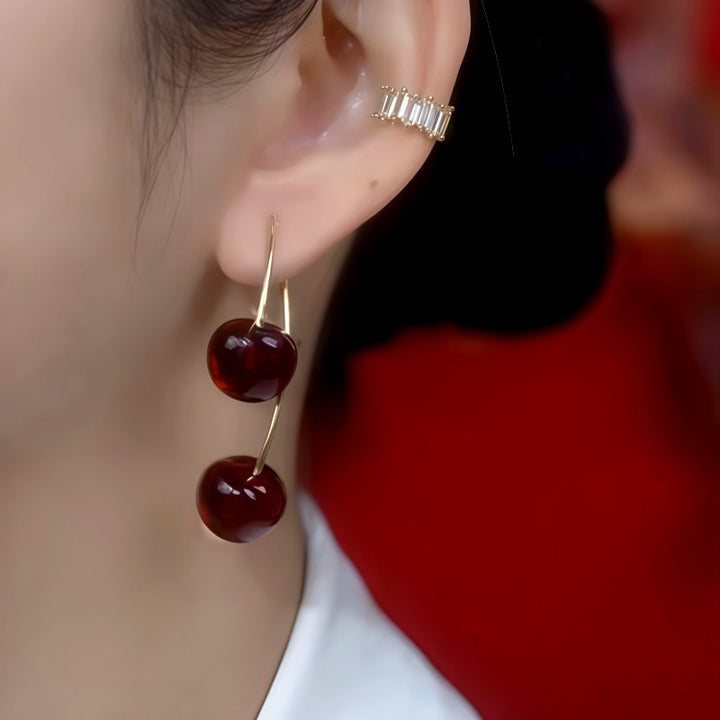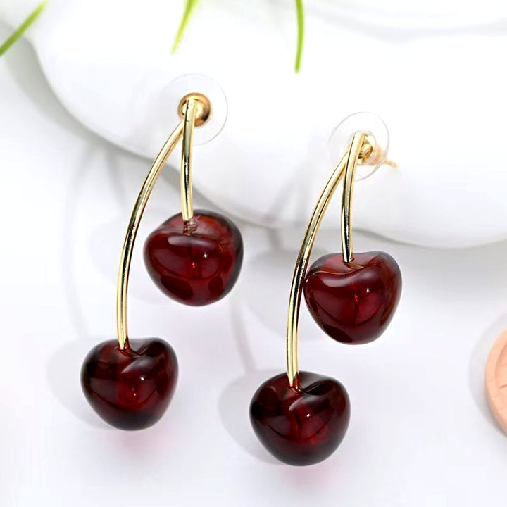14K Gold-Plated Elegant Double-Cherry Earrings