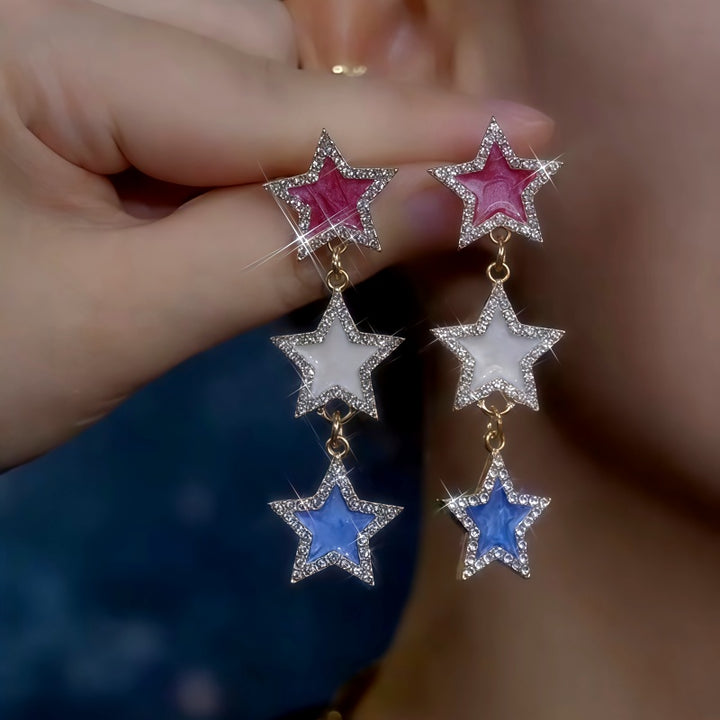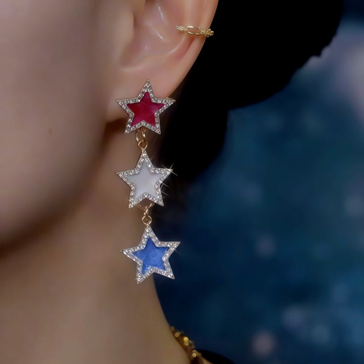 14K Gold-Plated Luxury Colorful Zircon Diamond Star Tassel Earrings