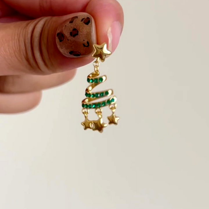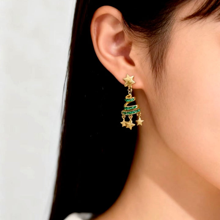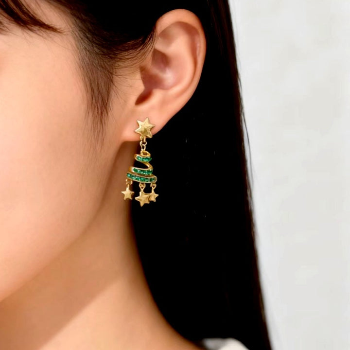 14K Gold-Plated Zircon Diamond Christmas Tree Star Tassel Earrings