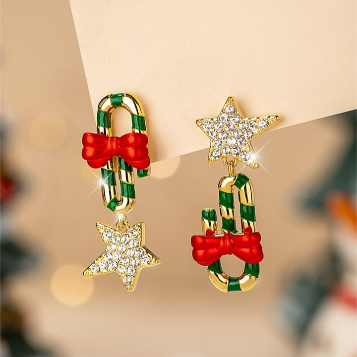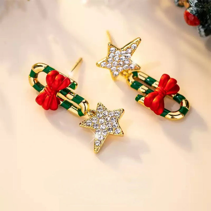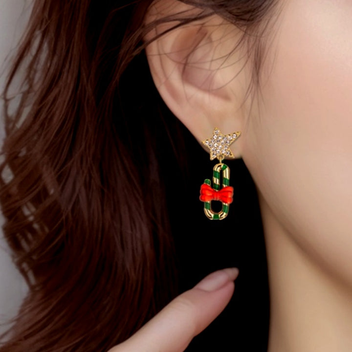 14K Gold-Plated Zircon Diamond Star Christmas Earrings