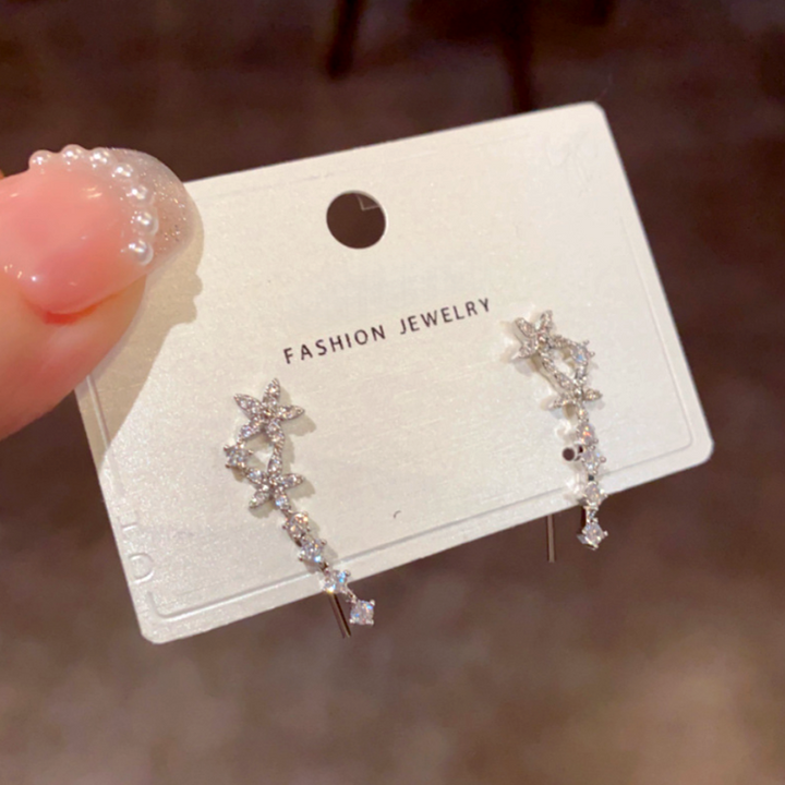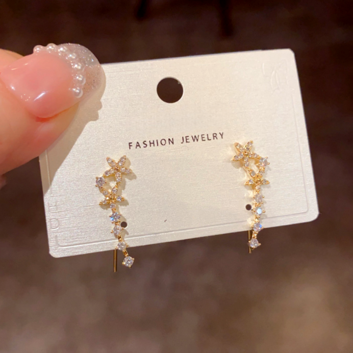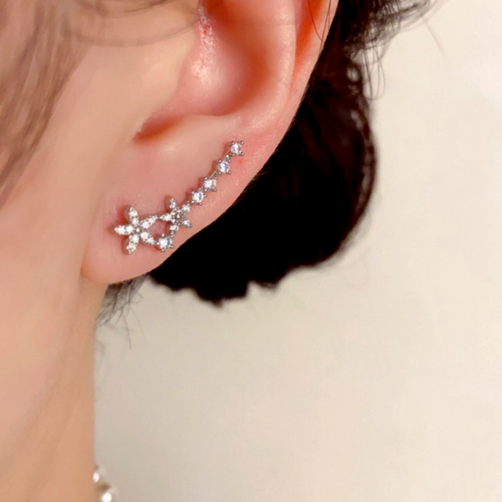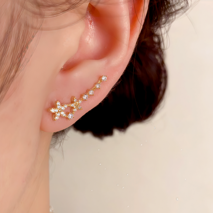 14K Gold-Plated Luxury Zircon Diamond Star Crawler Earrings
